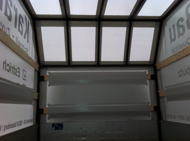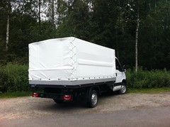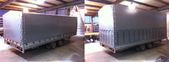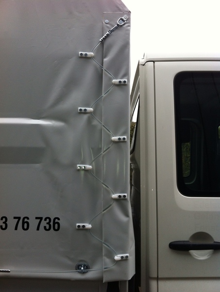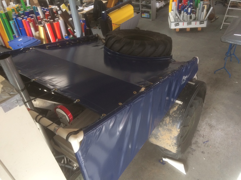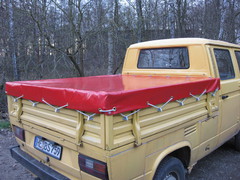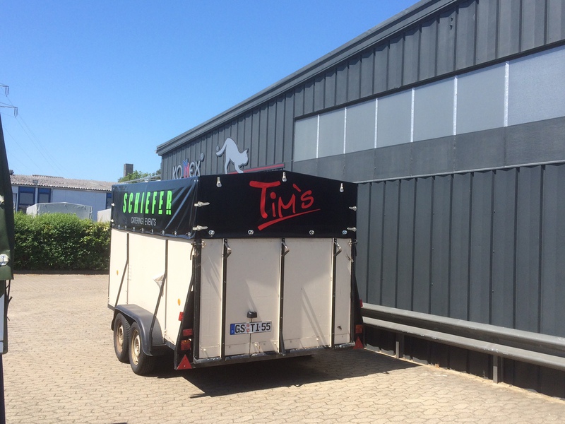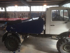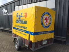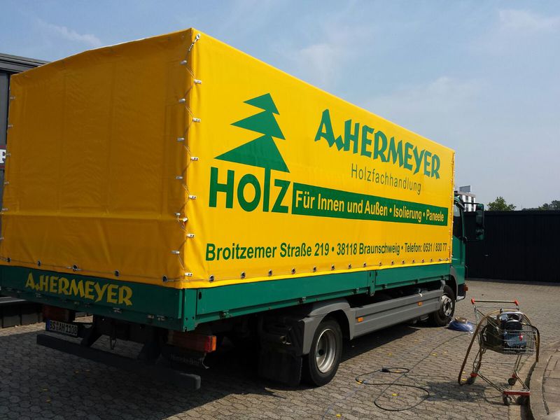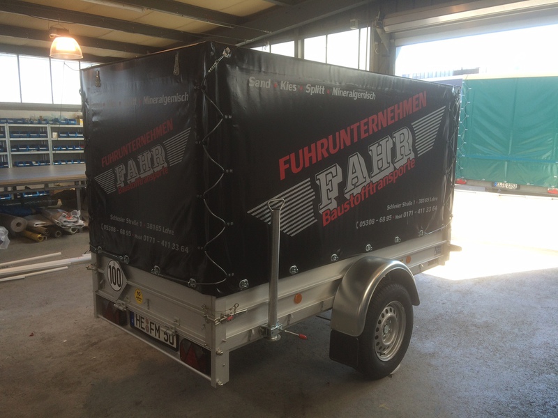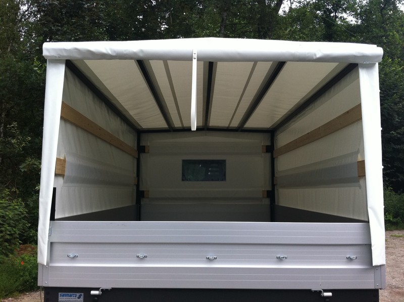 eine maßgefertigte Plane, Sie können auch das entsprechende Spriegelgestell
